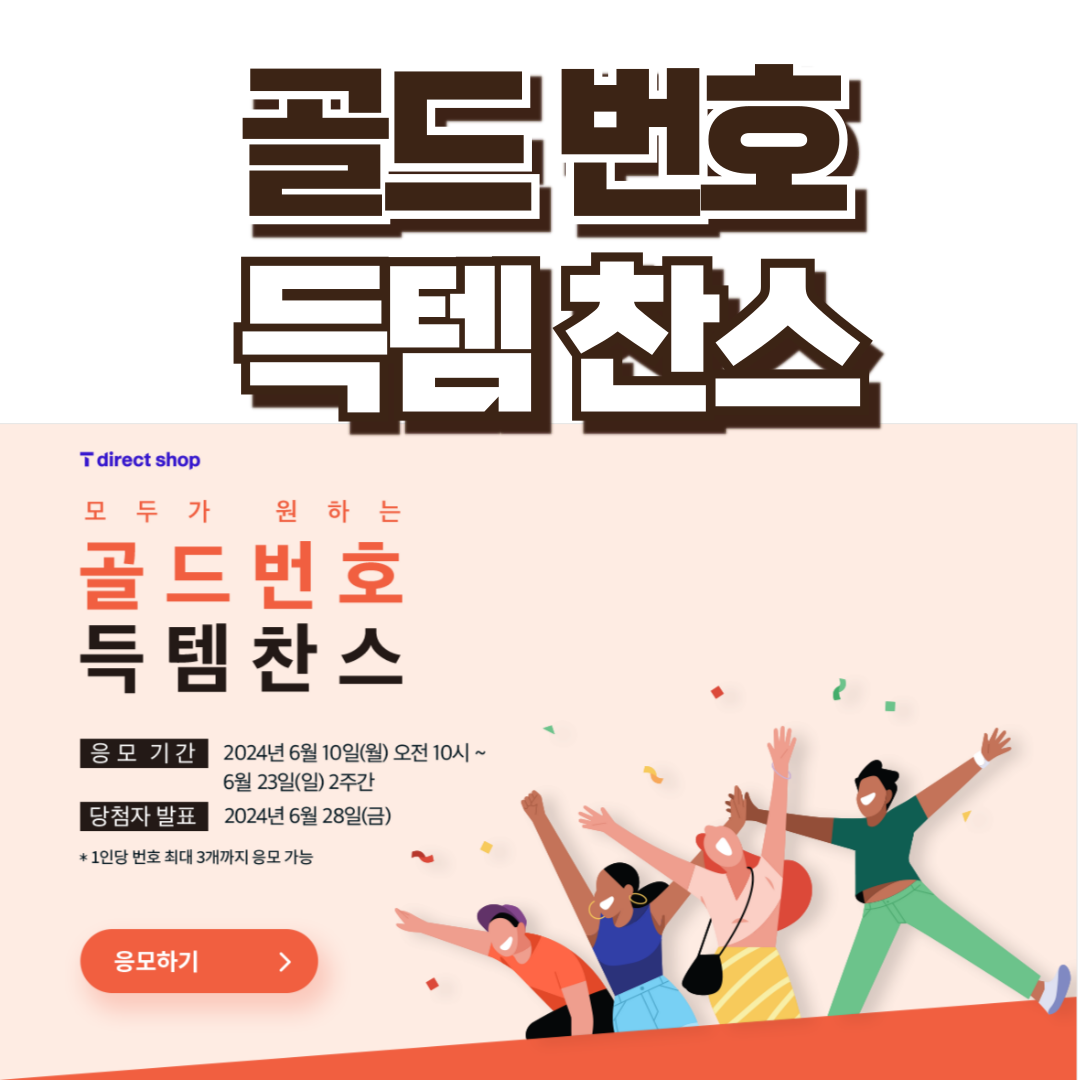 - 아이핀 인증으로 응모한 경우 T 다이렉트샵에서, 마이핀 인증으로 응모한 경우 SK텔레콤 공식인증 대리점이나 지점에서 당첨 여부를 확인할 수 있습니다. - 번호 취득 기간 : 2024년 7월 1일(월) ~ 7월 19일(금)